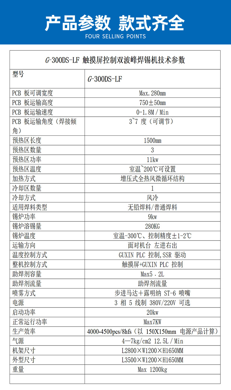 ◇錫爐波峰高度均采用電子變頻調(diào)速,可獨(dú)立控制波峰高度。