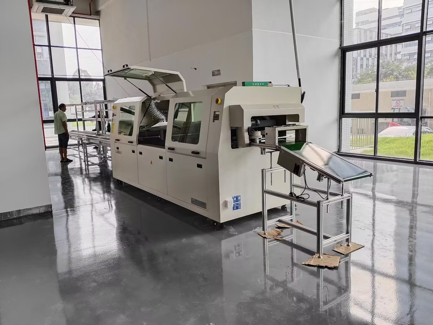 ◇助焊劑噴霧區(qū)和錫爐波峰焊接區(qū)采用密封式裝置,助焊劑煙霧從專用排風(fēng)及回收通道排出,滿足車(chē)間環(huán)保要求。