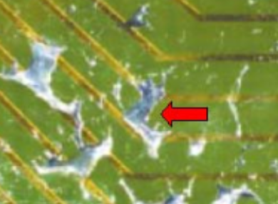 4)基板制作時選用阻焊膜或殘留某些與助焊劑不能兼容的物質(zhì),在過熱后產(chǎn)生黏性黏著焊錫形成錫網(wǎng),可用丙酮,氯化烯類等溶劑來清洗。若清洗后還是法改善,則有基板層材加工不正確的可能,及時回饋基板供貨商。