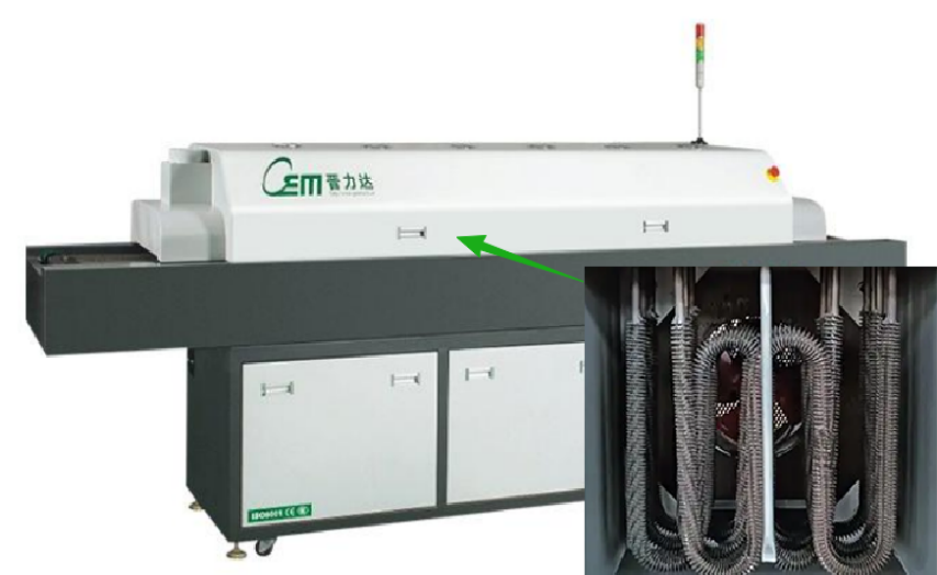 00001. 晉力達成立并通過學習國外回流焊技術(shù)引入了紅外熱輻射加熱結(jié)構(gòu),使用紅外發(fā)熱管+發(fā)射板結(jié)構(gòu)傳遞熱量,屬于基礎(chǔ)型回流焊,在國內(nèi)廣泛使用且成本較低。熱能傳遞集中于元件表面,局部升溫速率快,適合小型元件密集焊接,符合當時的國內(nèi)低端簡易產(chǎn)品焊接工藝要求并沿用至今。