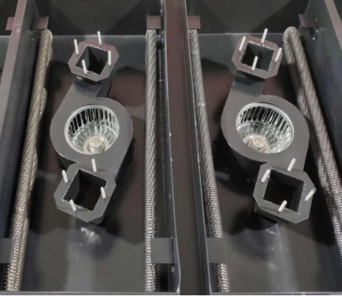 晉力達自行研發(fā)熱風循環(huán)技術(shù),通過高溫馬達+風葉吹風,使發(fā)熱管加熱變?yōu)闊犸L,側(cè)位回風形成循環(huán),熱風結(jié)構(gòu)熱傳遞效率顯著提升(30–50W/m2K),消除了陰影效應(yīng)和顏色對吸熱的影響,成為當時主流技術(shù)。