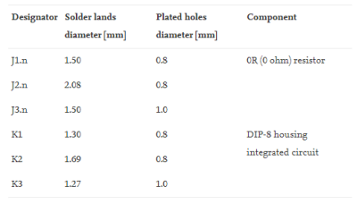 表1. 測試電阻器和DIP的通孔和焊盤的尺寸。