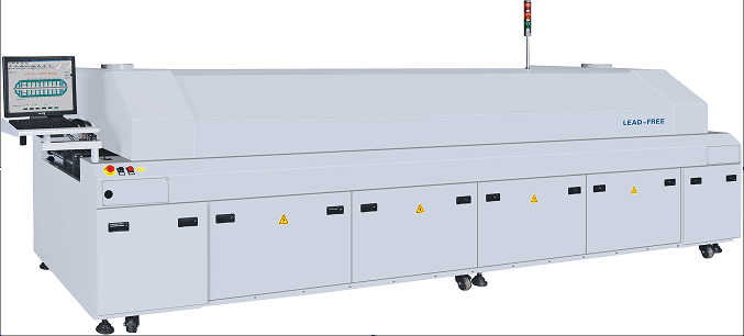 回流焊是SMT三大安裝工藝之一。回流焊主要用于焊接粘貼元件的電路板。焊膏通過加熱熔化,芯片組件和電路板墊熔合在一起。再將焊膏通過回流焊冷卻,將組件與焊盤熔合在一起。回流焊的結(jié)構(gòu)。