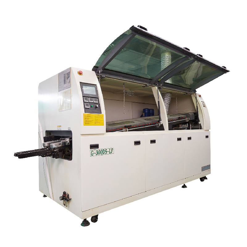 波峰焊錫機的焊接表面與高溫液態(tài)錫直接接觸。材料為錫銀銅合金,溫度的設(shè)定也是焊料的熔化階段。波峰焊錫機是使插板的焊接表面直接與高溫液態(tài)錫接觸,從而達到焊接的目的。高溫液態(tài)錫保持一定的坡度,液態(tài)錫通過特殊裝置形成類似于波浪的通道,因此波峰焊錫機的主要部分是波浪焊接爐。