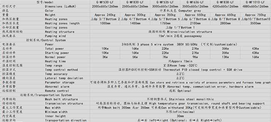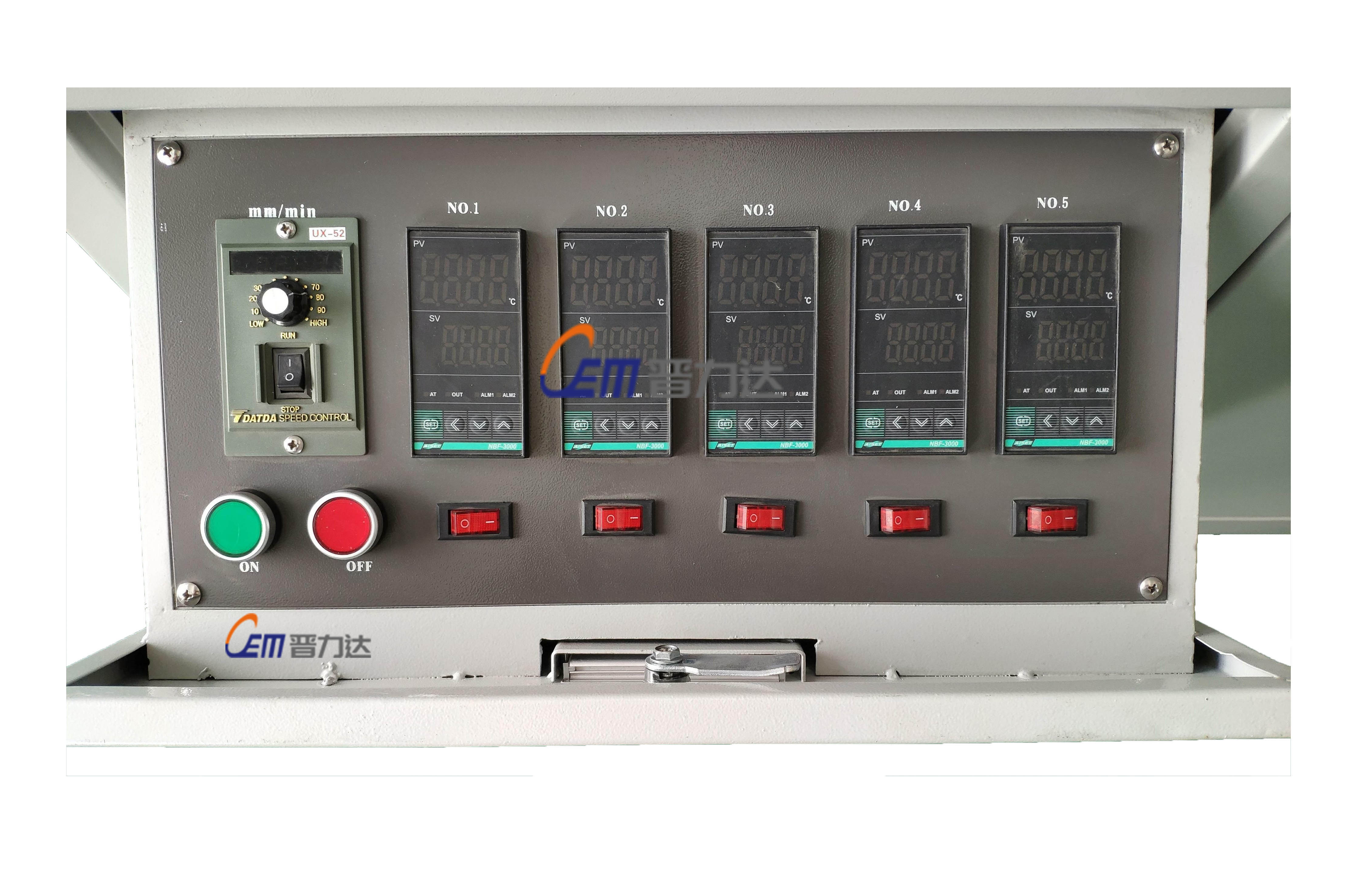 4、相鄰溫區(qū)差別MAX可達100℃,不串溫,每個溫區(qū)之溫度和熱風風速獨立可調(diào)節(jié),運輸采用變頻控制、濕度控制精度可達±10mm/min,特別適合 BGA/CSP及0201等焊接