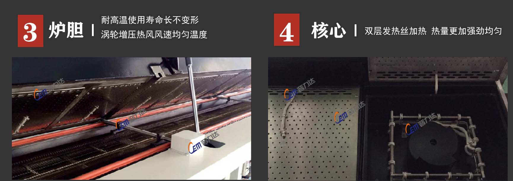 ●可對(duì)工礦燈散熱座、大型電感、大型吸熱元件的焊接與烘烤