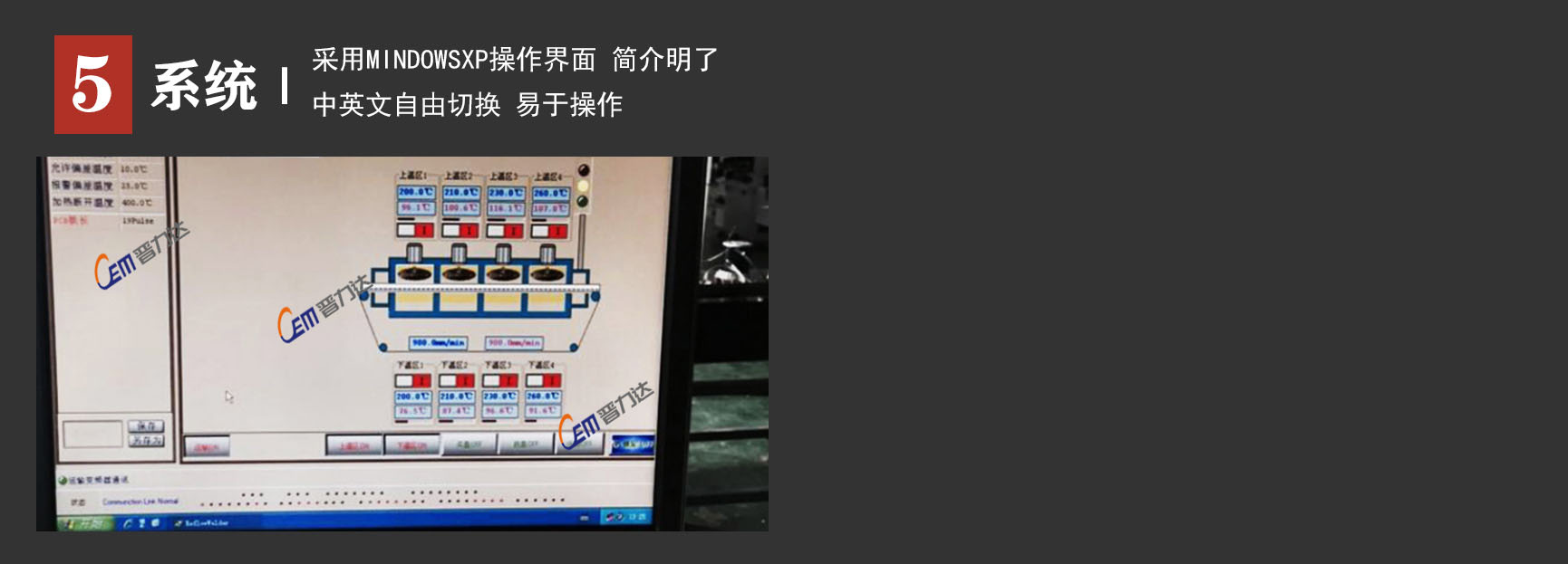 6 Windows 視窗操作系統(tǒng),中英文界面,操作人性化,簡(jiǎn)單;電腦控制與緊急手動(dòng)停止按鈕,具有安全保障功能;