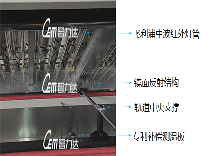 ●紅外管發(fā)熱結(jié)構(gòu),并配置鏡面反光板,反射熱能至產(chǎn)品上,減少熱量損耗
