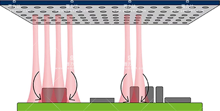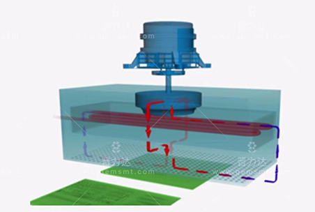 7、由于先進的孔噴嘴幾何形狀,出色的熱傳遞以及加熱模塊中可監(jiān)控的可調超壓,保證均勻和無間隙的熱傳遞到電路板。整個過程可以保證惰性工藝氣氛焊接過程,因為是封閉的系統(tǒng),沒有外部空氣進入處理室。 熱流在系統(tǒng)內通過循環(huán)發(fā)生,即過程預熱和峰值區(qū)域的氣體被提取,清洗并從側面重新插入過濾網(wǎng)。