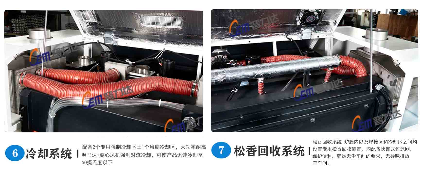 5、采用的氮氣密閉技術,可完全實現(xiàn)氮氣回流焊PCB經(jīng)過區(qū)域需達到的低氧殘余量減少端件及焊盤氧化,提升浸潤性,并可對針對小型BGA產(chǎn)品,焊盤假焊狀況,特殊件管腳的針對排插管腳電鍍成本變化造成的上錫不良問題,高上錫標準,對便攜式高檔產(chǎn)品的摔擊試驗,振動試驗,高低溫試驗均有好的改善效果。
